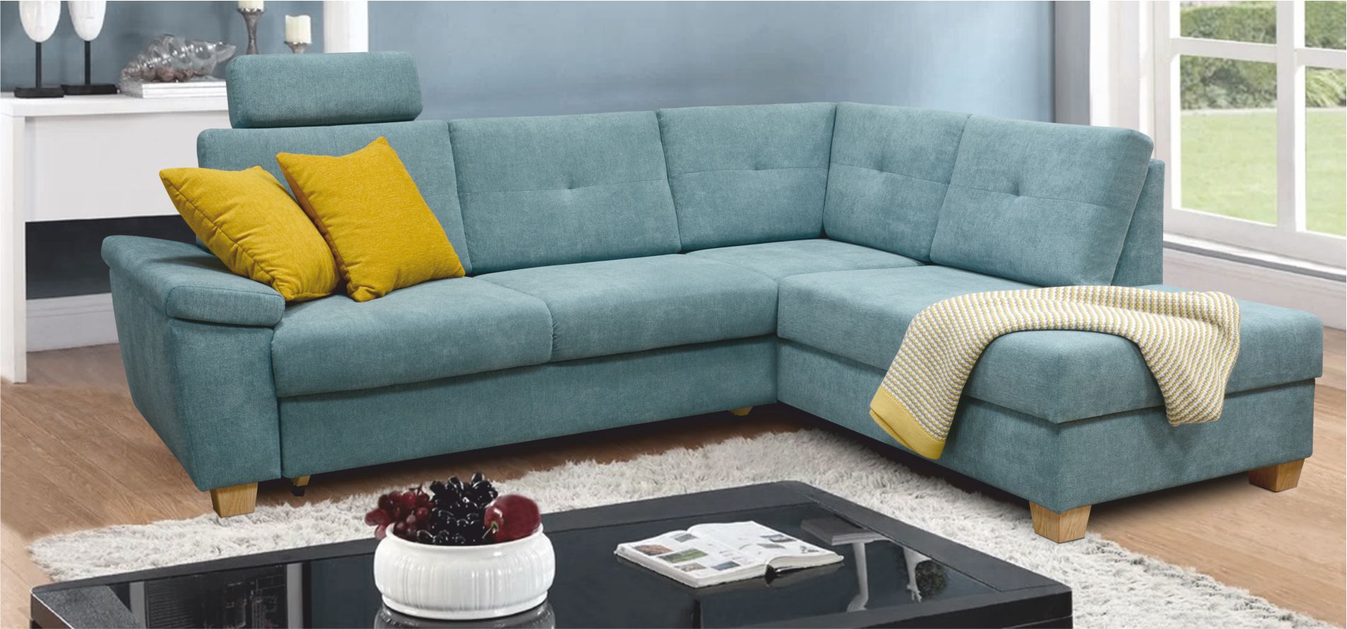 Sedací souprava TRIADA je s úložným prostorem a s rozkládáním pouze v rohovém provedení. Lavé nebo pravé provedení je samozřejmostí.
