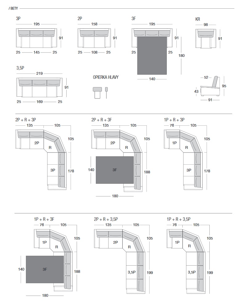 Možnosť objednat opěrku hlavy na všechny sedící pozice, kromě rohového dílu.