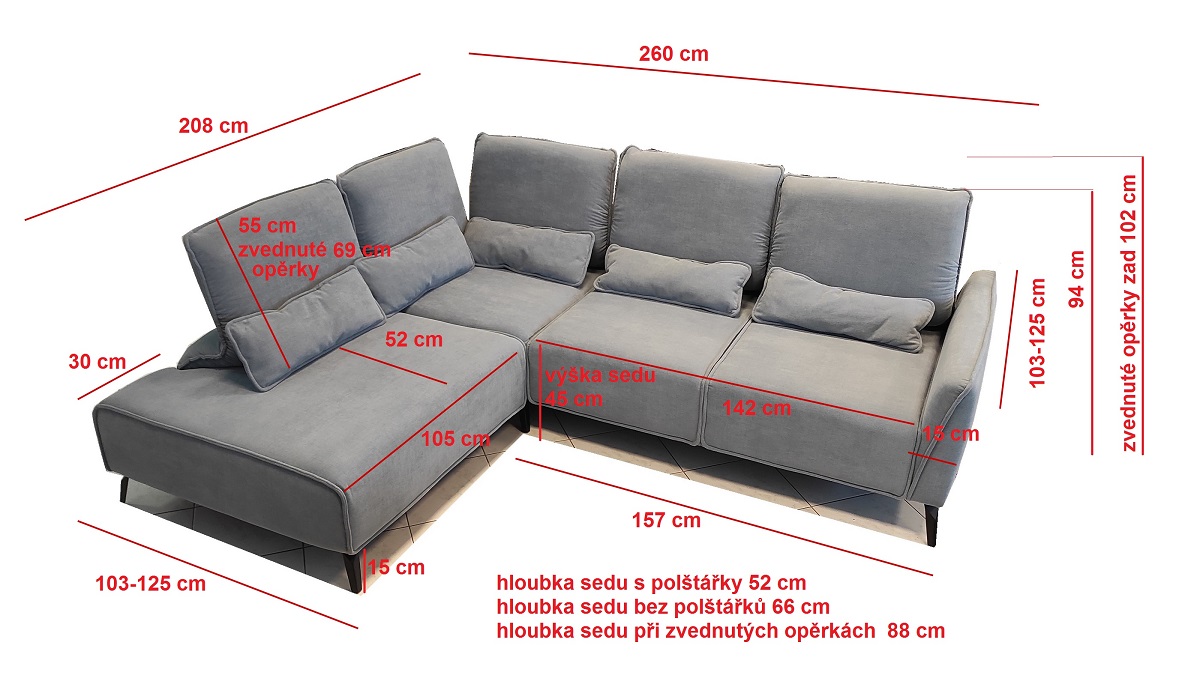 Rozměr: š. 260-282 h. 208-230 v.94/102 cm