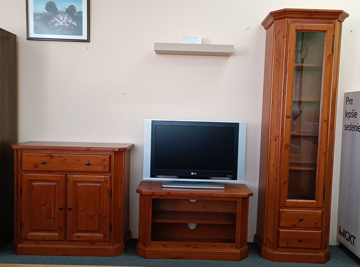 Kvalitní obývací stěna ze smrkového masivu. Kvalitní kování. Český výrobek LOUDA.